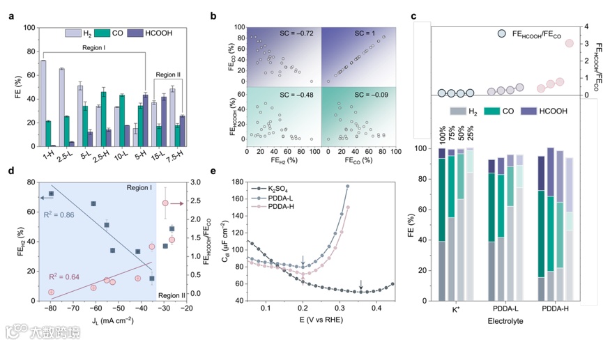 图1. 不同阳离子环境下的CO₂RR性能