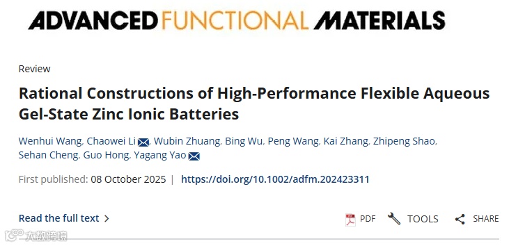 随着可穿戴电子设备(如智能传感器、电子皮肤、折叠手机等)的快速发展,对与之配套的柔性电源系统提出了更高要求:高安全性、高能量密度、良好的机械柔性和环境友好性。传统的锂离子电池和钠离子电池因使用易燃有机电解质存在安全隐患,且成本较高,限制了其在柔性电子器件中的应用。水系锌离子电池(AZIBs)因其使用水性电解质,具备高安全性、高离子电导率、低成本等优势,成为研究热点。然而,液态电解质易泄漏、易引发锌枝晶、析氢反应、电极溶解等问题。为克服这些缺陷,将液态电解质替换为凝胶电解质,获得兼具高柔性与安全性的柔性水系凝胶态锌离子电池(FAGZIBs),成为柔性电子器件理想的供能设备。本文为未来的研究方向提供了借鉴,有助于加速凝胶态柔性锌离子电池的研究及实际应用。本文第一作者为南京大学博士研究生王文惠,通讯作者为南京大学姚亚刚教授,安阳师范学院李朝威副教授,通讯单位为南京大学、安阳师范学院。
