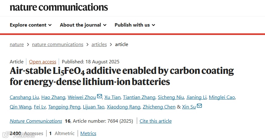 在锂离子电池迈向高能量密度的进程中,“首循环失锂”问题始终是绕不开的技术瓶颈。特别是当硅基等高容量负极材料被引入后,由于固态电解质界面(SEI)的形成,最多可损失15%以上的活性锂离子,直接限制了整电池的容量释放与寿命表现。为了弥补这一锂损,预锂化技术成为近年来研究和产业界重点关注的方向。相比负极预锂化,正极预锂化路径更安全、易实现,与现有工艺兼容性更强。其中,Li5FeO4因其高锂含量、优异的电化学性能和匹配的电压平台,被认为是最具潜力的正极预锂化添加剂之一——然而,它对空气极为敏感,极易分解,严重制约了其工程应用。
