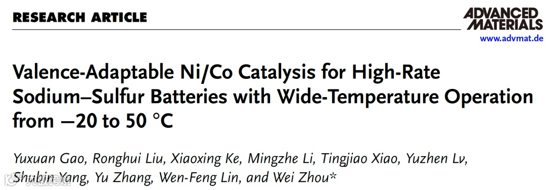 Ni/Co元素变价催化实现宽温域高倍率钠硫电池