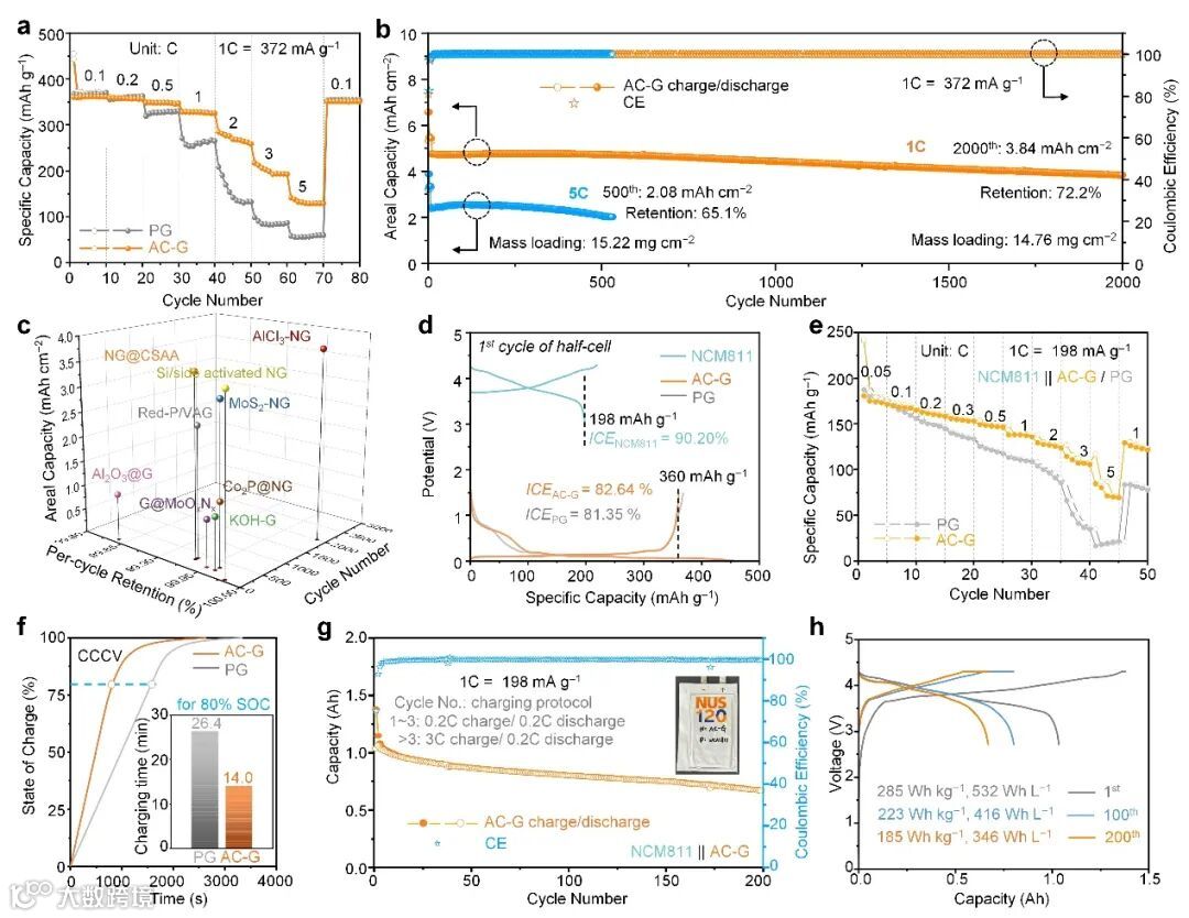 设计的石墨负极具备优异的快充循环(5C)稳定性和高的面容量保持率。。 -
