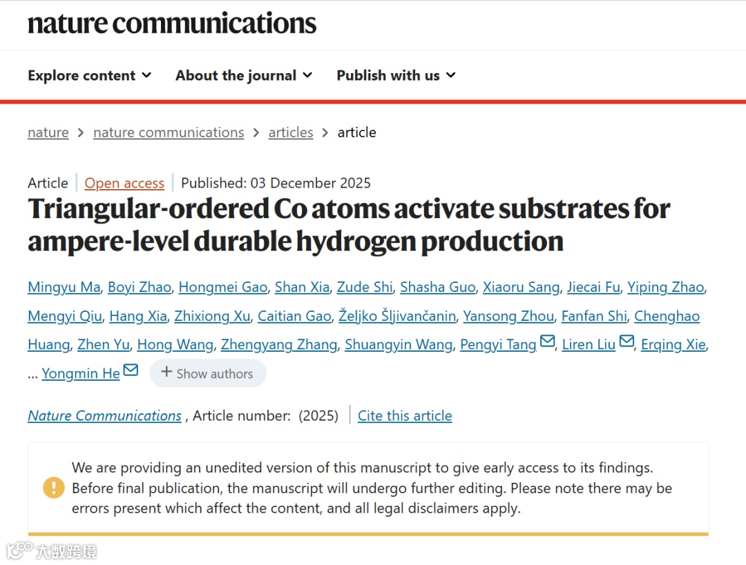 三角有序钴原子激活氮化钒,实现安培级耐久析氢