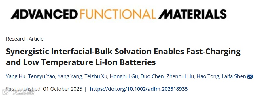 协同界面-体相溶剂化结构,实现快充/超低温(-70°C)锂离子电池