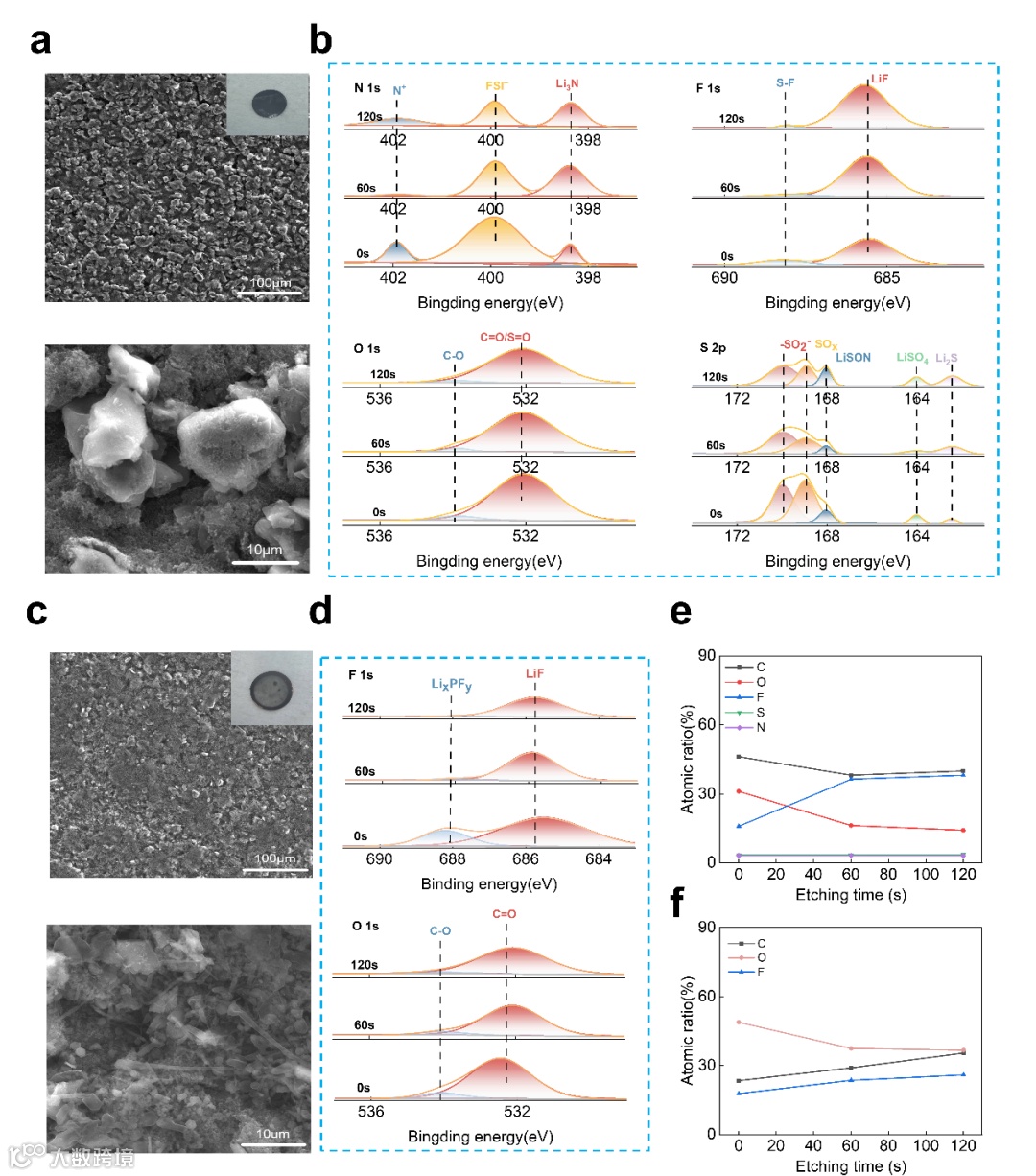 图6. 不同电解液循环后电极界面表征