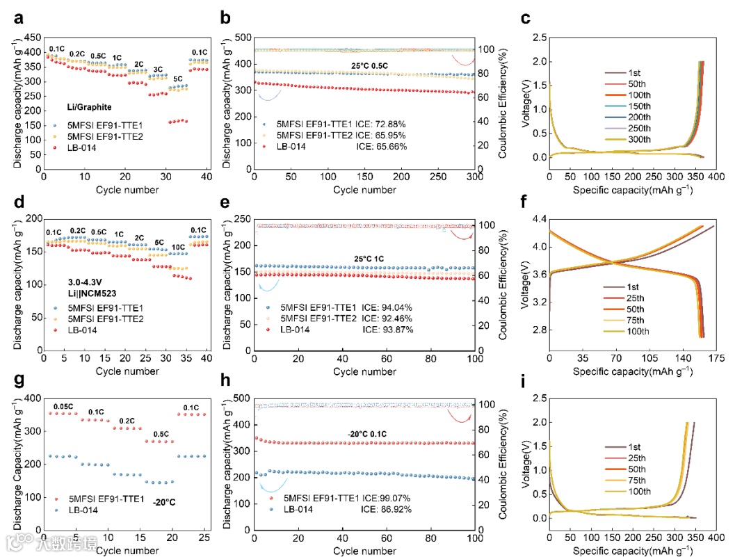 图4. 5 M FSI EF91-TTE1、5 M FSI EF91-TTE2和LB-014的电化学性能
