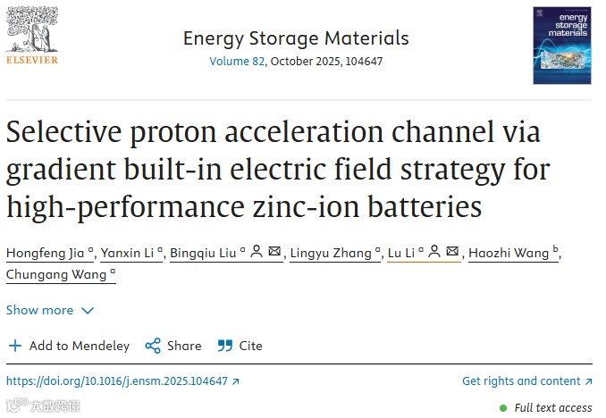 基于梯度内建电场策略的高性能锌离子电池选择性质子加速通道