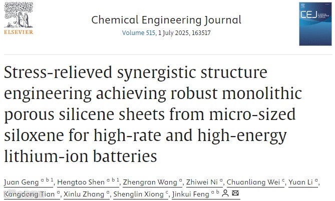 “Stress-relieved synergistic structure engineering achieving robust monolithic porous silicene sheets from micro-sized siloxene for high-rate and high-energy lithium-ion batteries”