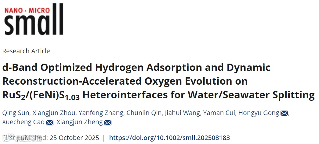 近日,江苏科技大学郑祥俊报道了一种通过均相螯合-硫化策略精准构建的RuS2/(FeNi)S1.03动态异质界面催化剂。该催化剂在HER和OER中展现出独特的双机制协同效应,有效解决了双功能电催化剂中界面需求矛盾的关键难题。在HER过程中,RuS2通过静态电子调控发挥作用,界面电子转移使其Ru的d带中心下移至–1.99 eV,显著优化氢吸附自由能(ΔGH* = 0.51 eV)。而在OER过程中,(FeNi)S1.03发生动态重构,转变为具有高OER活性的Fe-NiO氧化物,并与稳定的RuS2形成RuS2/Fe-NiO界面,有效降低反应能垒。因此,在工业规模AEM-WE评估中展现出超长的稳定性, 1000 mA・cm-2电流密度下可稳定运行超 250 h,满足大规模制氢的工业寿命标准。