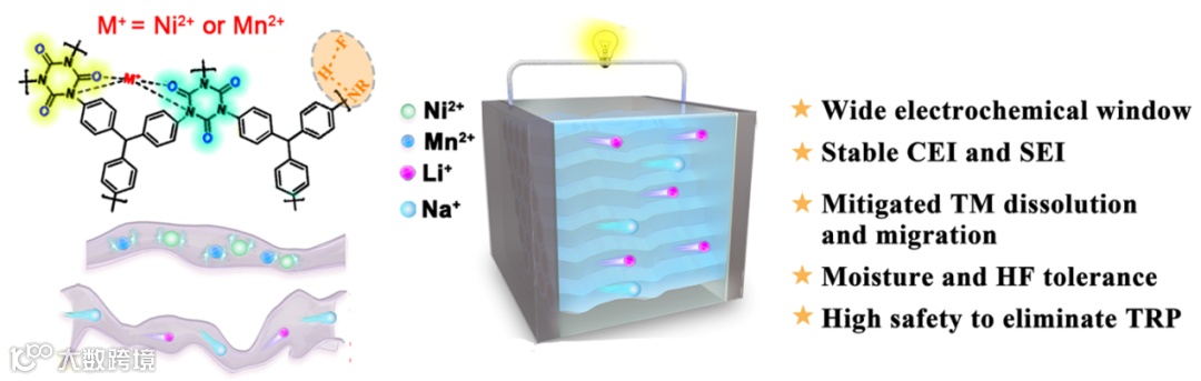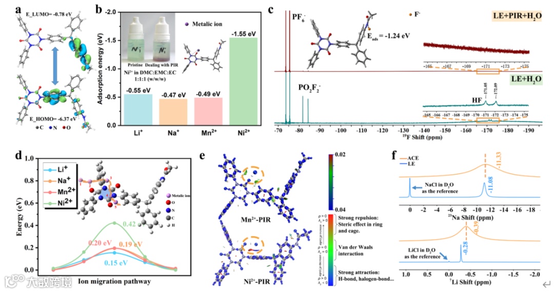 利用PIR中N和O原子与Li+,Na+,过渡金属离子(Ni2+、Mn2+)以及HF之间结合能的不同,使电解质对离子产生选择性吸附,电解质从而具备耐湿性并能够有效抑制过渡金属离子的溶解与迁移。