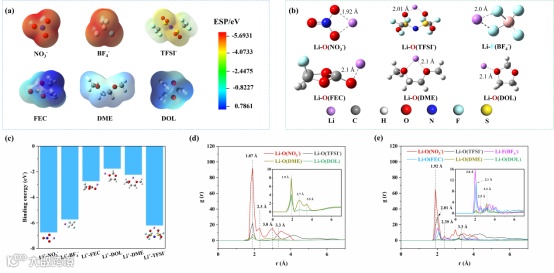 图3. 富阴离子和FEC协同配位锂离子弱溶剂化结构模拟验证
