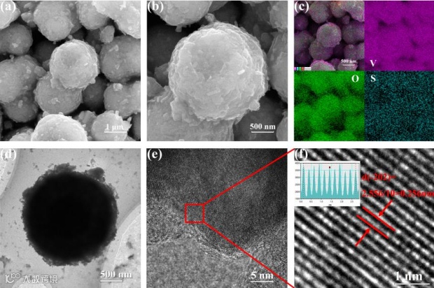 图 1.通过多种表征手段(SEM、元素 mapping、TEM、HRTEM),主要说明S 掺杂 VO₂材料的形貌、元素分布与晶体结构特征。