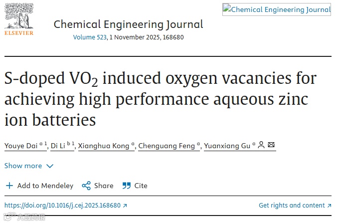 该研究聚焦水系锌离子电池(AZIBs)正极材料的关键瓶颈,提出非金属硫(S)掺杂改性 VO₂的创新策略,为高容量、长寿命 AZIBs 正极设计提供了重要参考。