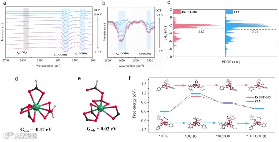理论计算和机理研究表明,配位数对材料的催化性能有显著影响,低配位数一方面优化了Bi活性位点对*OCHO的结合能力;另一方面由于低配位数降低了空间位阻,使*OCHO呈现出桥联的吸附构型,导致形成*OCHO所需的自由能更低,更有利于HCOOH的形成。这项工作代表了调节催化协调以提高CO2RR性能的一个重要例子。