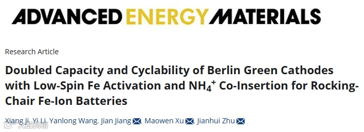 低自旋铁活化与NH4+共嵌入策略构筑高容量长寿命铁离子电池正极