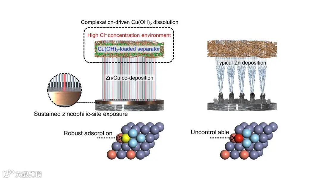 图1. Zn/Cu共沉积行为与传统Zn沉积行为对比示意图