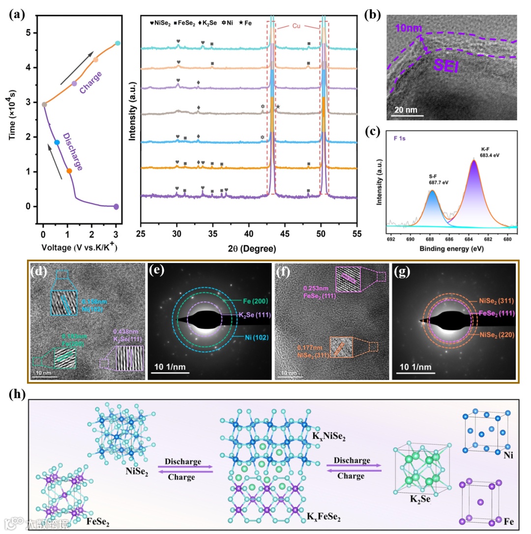 图6. FeSe2/NiSe2@CM的储钾机理分析