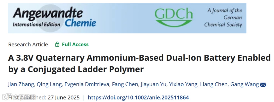 共轭梯形聚合物驱动的3.8V高压季铵双离子电池