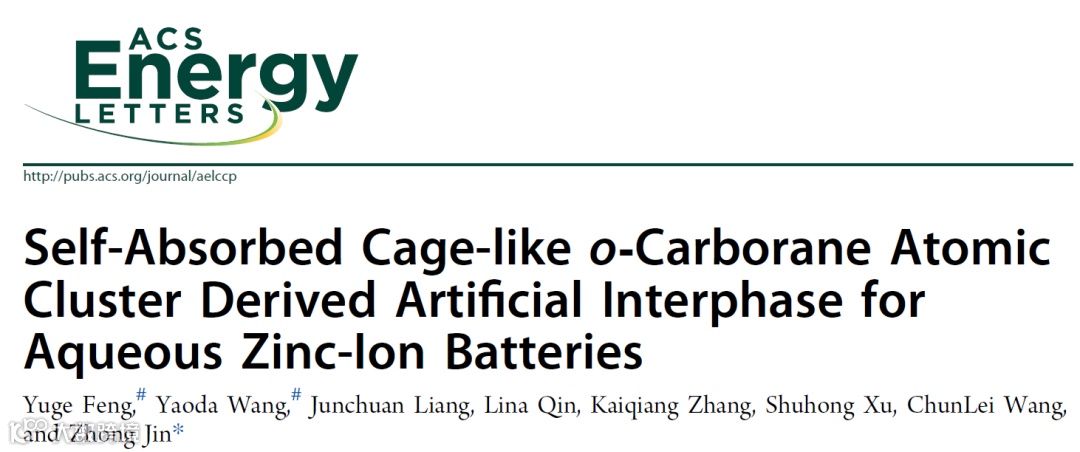 Yuge Feng,# Yaoda Wang,# Junchuan Liang, Lina Qin, Kaiqiang Zhang, Shuhong Xu, ChunLei Wang, and Zhong Jin* Self-Absorbed Cage-like o‑Carborane Atomic Cluster Derived Artificial Interphase for Aqueous Zinc-Ion Batteries. ACS Energy Lett. 2025, 10, 6489−6499.