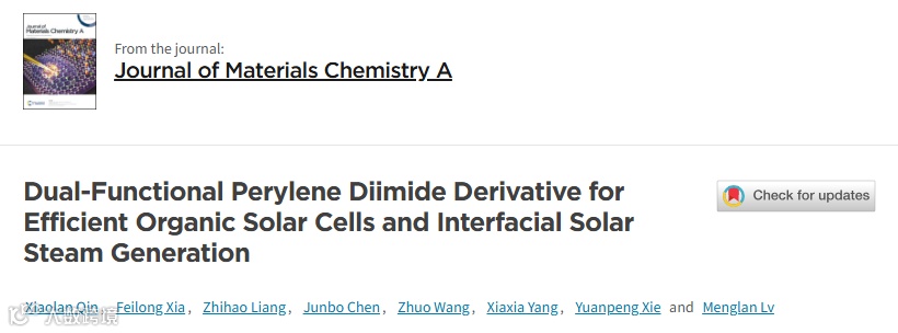 Dual-Functional Perylene Diimide Derivative for Efficient Organic Solar Cells and Interfacial Solar Steam Generation. Journal of Materials Chemistry A, 2025,