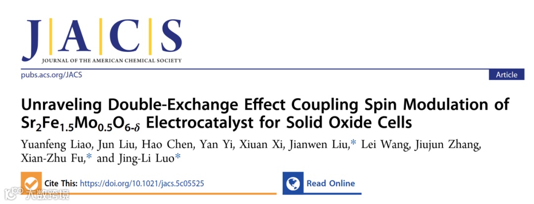Liao, Y.; Liu, J.; Chen, H.; Yi, Y.; Xi, X.; Liu, J.; Wang, L.; Zhang, J.; Fu, X.-Z.; Luo, J.-L. Unraveling Double-Exchange Effect Coupling Spin Modulation of Sr2 Fe1.5 Mo0.5 O6-δ Electrocatalyst for Solid Oxide Cells. J. Am. Chem. Soc. 2025, jacs.5c05525. https://doi.org/10.1021/jacs.5c05525.