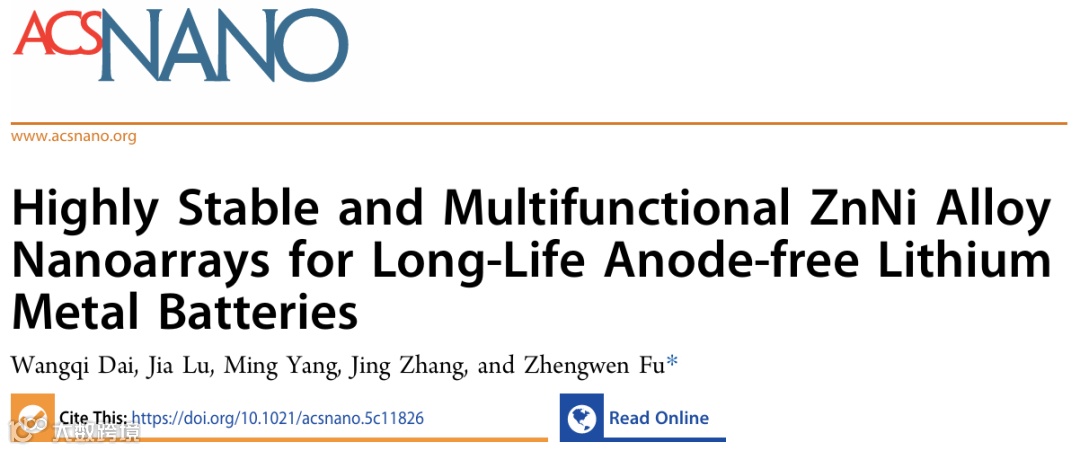 Wangqi Dai, Jia Lu, Ming Yang, Jing Zhang, and Zhengwen Fu*. Highly Stable and Multifunctional ZnNi Alloy Nanoarrays for Long-Life Anode-free Lithium Metal Batteries. ACS nano.