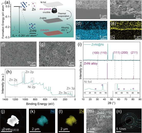 图1. ZnNi@Ni电极的制备与表征。