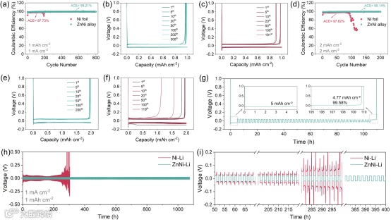 具有高稳定性及多功能的ZnNi合金纳米阵列用于长循环寿命无负极金属锂电池
