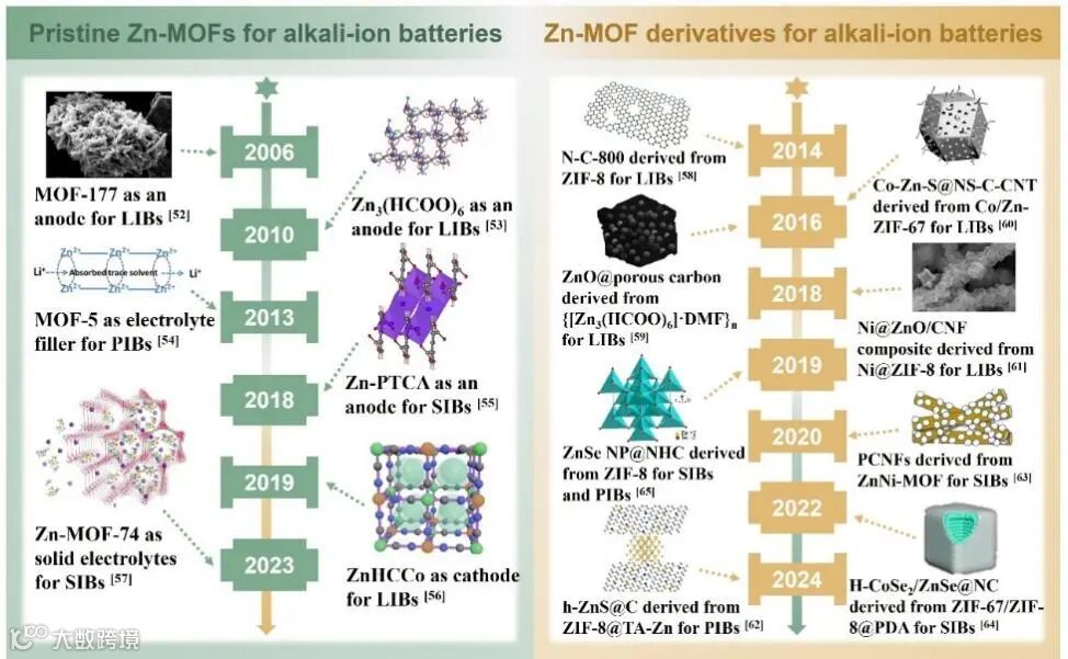 图4. Zn-MOFs及其衍生物用于AIBs的关键时间线