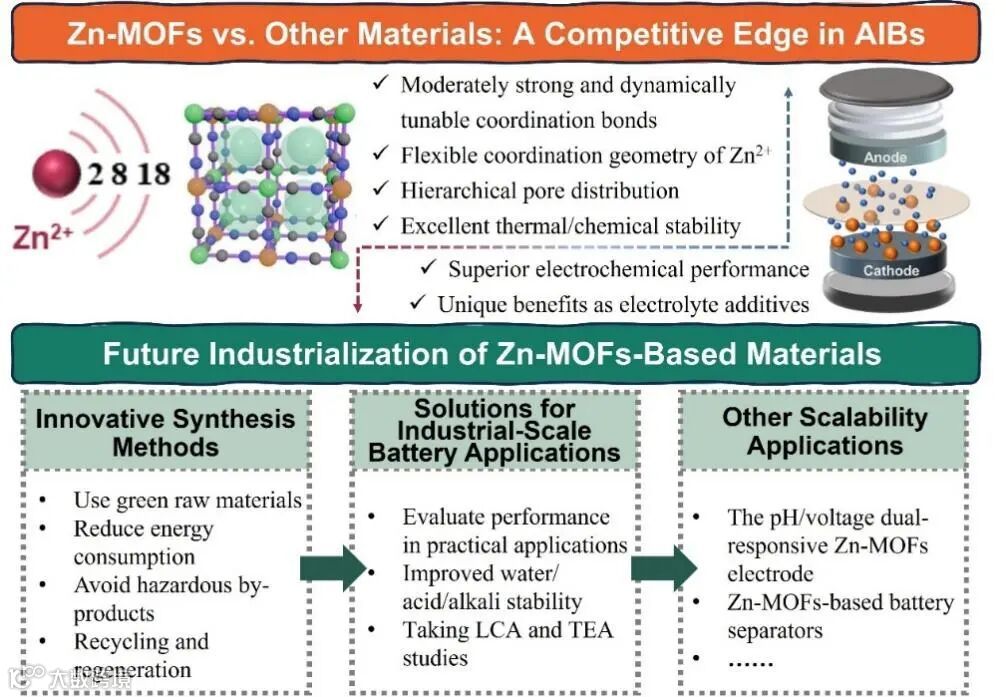图5. Zn-MOFs基材料用于AIBs的优势以及未来工业前景