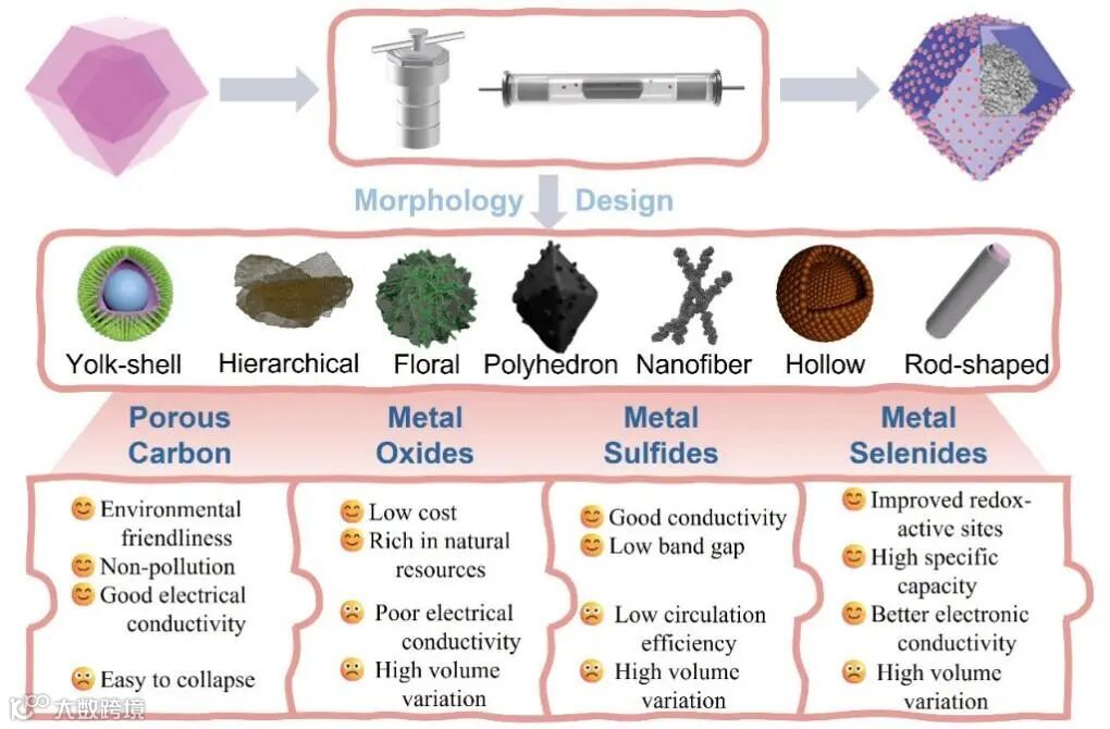(Ⅱ)Zn-MOFs衍生的多孔碳、金属氧化物、金属硫化物和金属硒化物表现出独特的形貌,具有高导电性和丰富的孔隙结构,适合作为电极材料。