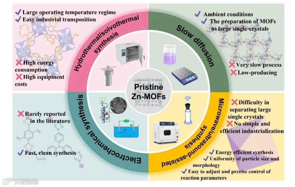 图2. 四种Zn-MOFs合成策略的优缺点