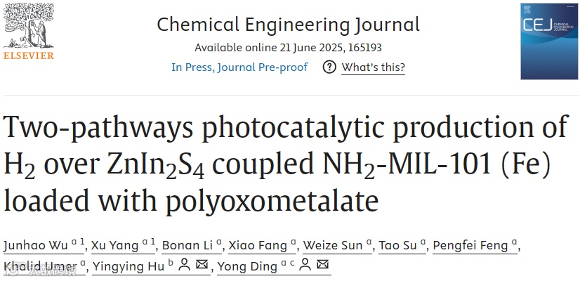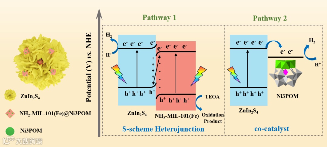 ZnIn2S4 耦合负载多氧金属酸盐的NH2-MIL-101 (Fe) 实现双路径光催化制 H2