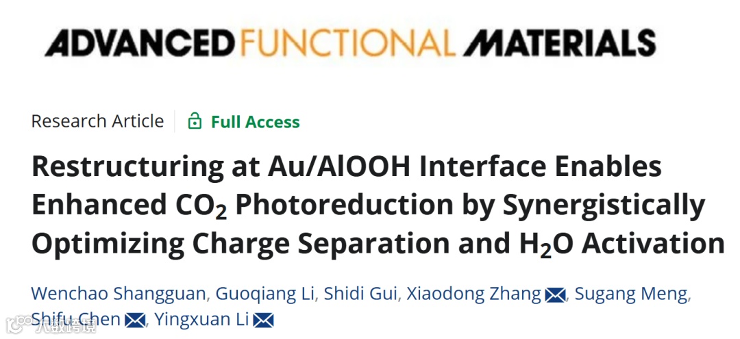 Wenchao Shangguan, Guoqiang Li, Shidi Gui, Xiaodong Zhang, Sugang Meng, Shifu Chen, Yingxuan Li, Restructuring at Au/AlOOH Interface Enables Enhanced CO2 Photoreduction by Synergistically Optimizing Charge Separation and H2O Activation. Adv. Funct. Mater. 2025, 2501285.