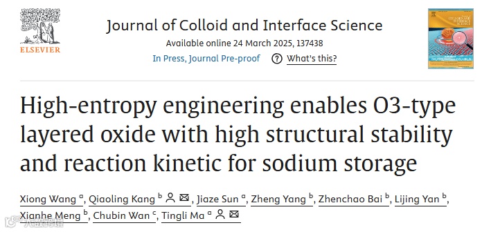 中国计量大学康巧玲JCIS丨高熵工程促进O3型层状钠离子电池正极材料的高结构稳定性和反应动力学