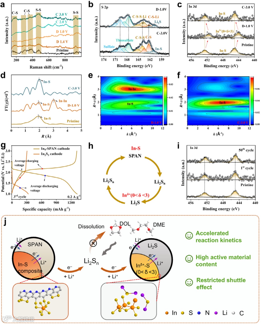 图5.In5-SPAN电极的结构与组分演变分析