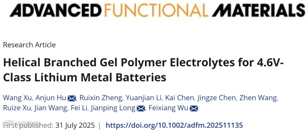 Helical Branched Gel Polymer Electrolytes for 4.6V-Class Lithium Metal Batteries. Adv. Funct. Mater. 2025, e11135.