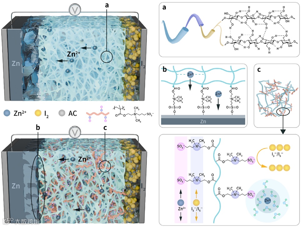 骆天治教授、毛磊教授、赵攀峰教授, Small观点:本研究通过巧妙的分子工程,设计了一种两性离子细菌纤维素水凝胶电解质(SBC),成功在同一材料平台上协同解决了锌碘电池正极多碘化物穿梭和负极锌枝晶生长两大核心难题,为开发长寿命、高性能水系转换电池提供了全新的电解质设计蓝图。