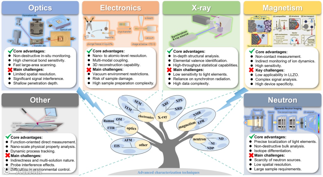 图3. 总结先进表征技术的优点和局限性的示意图。