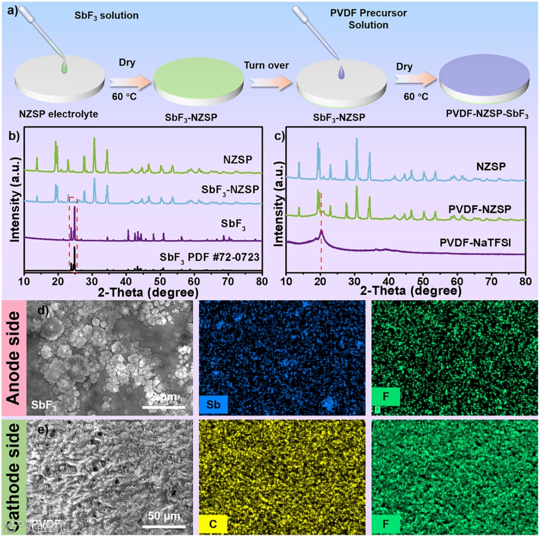 图1. PVDF-NZSP-SbF3人工界面层制备示意图及其相应的表征