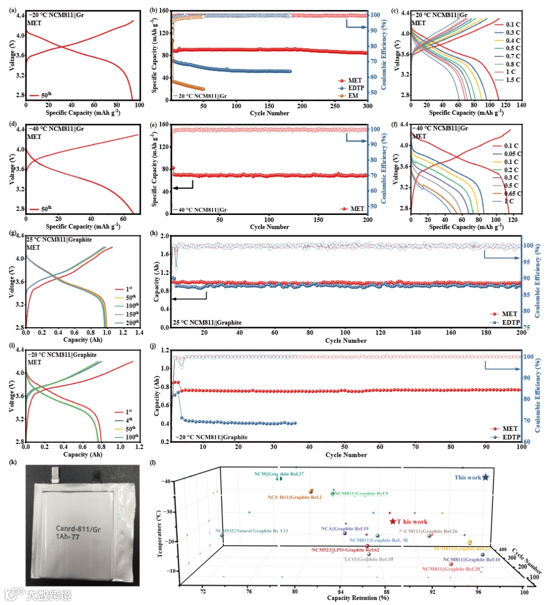 要点四:实现了NCM811||石墨电池低温条件下的良好稳定性