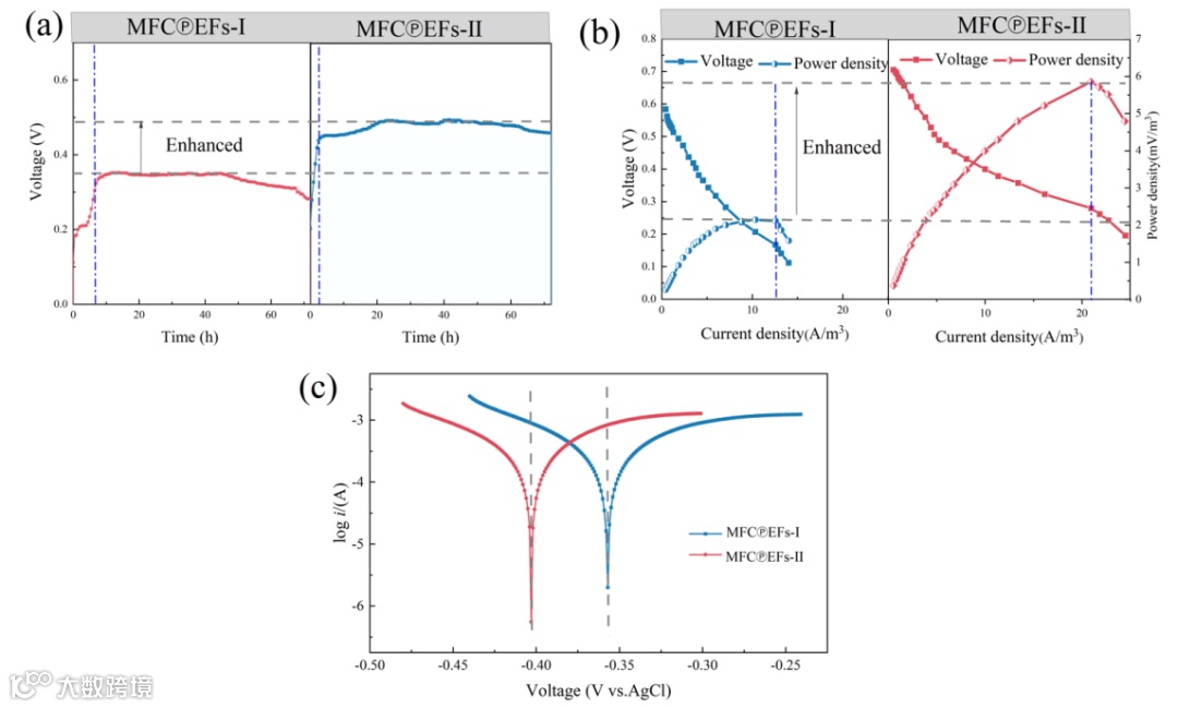 图5. 孪生MFCⓅEFs处理体系的电化学性能。