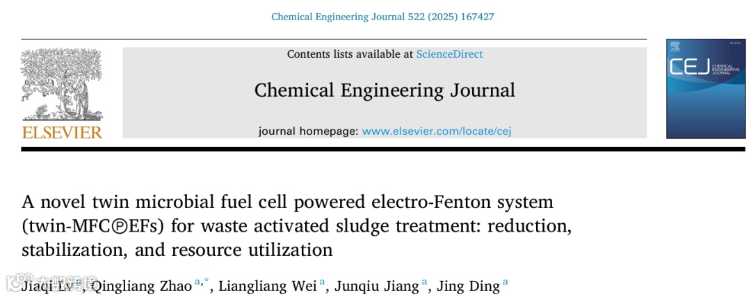 新型孪生微生物燃料电池驱动电芬顿系统用于剩余污泥处理:同步实现减量化、稳定化和资源化利用