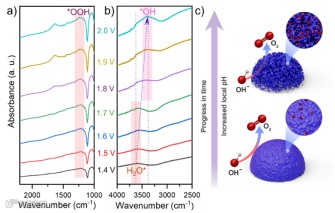图 4 | Ni3Fe1.2Cr0.8Ox在 OER 过程中的原位 ATR-SEIRAS 分析。