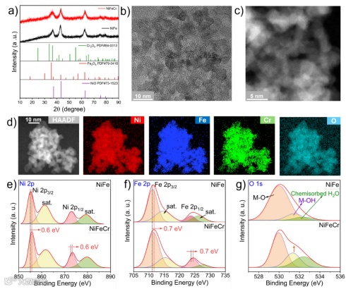 图 2 | Ni3Fe1.2Cr0.8Ox纳米颗粒的结构与成分表征。