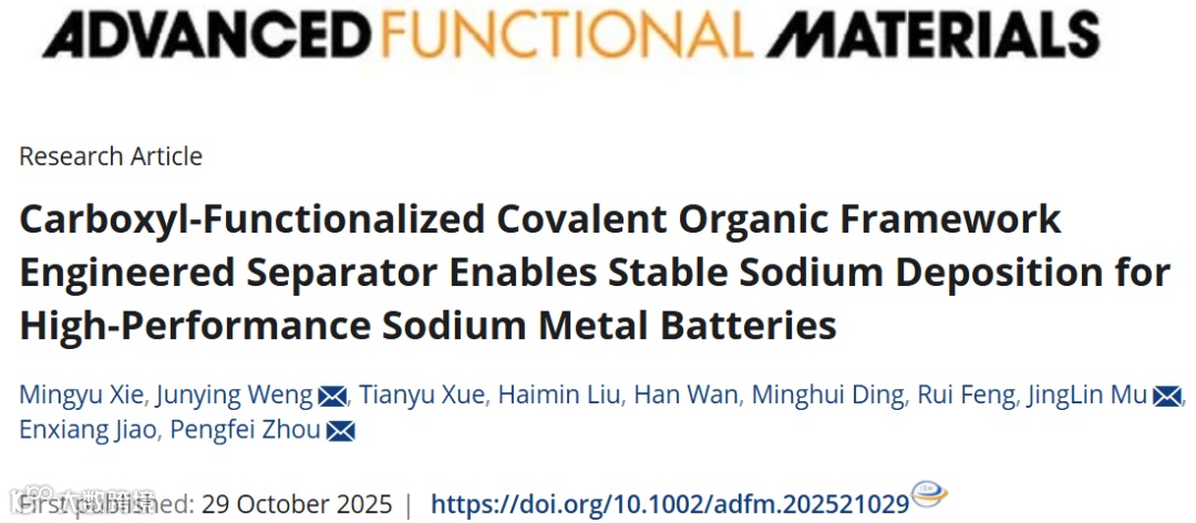 羧基功能化共价有机框架改性隔膜实现稳定钠沉积助力高性能钠金属电池