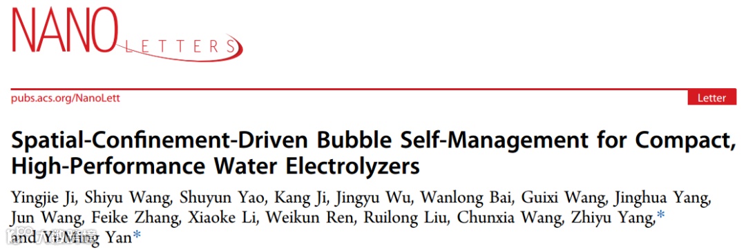 本研究针对水电解槽运行所面临的气泡积聚问题,提出了一种新的空间结构视角的自调节设计思路。通过电化学、原位光学和有限元模拟等手段,我们系统证明了空间限域设计对整体装置性能的影响并分析了其作用机理。这些发现揭示了设备几何在优化内部流场以实现气泡自发快速排出中的关键作用,并提供了对多相电化学过程中气泡行为的深入理解。初步的参数优化表明,空间限域策略具有极大发展潜力,优化的气液传质可以最大限度地发挥电解槽的本征性能,并且自管理的特性也可以进一步减少相关设备的投入和维护成本,为水电解装置的设计提供了新的思路,并有望在其他气体参与的电化学系统(如燃料电池、二氧化碳还原、固氮)中得到进一步拓展。