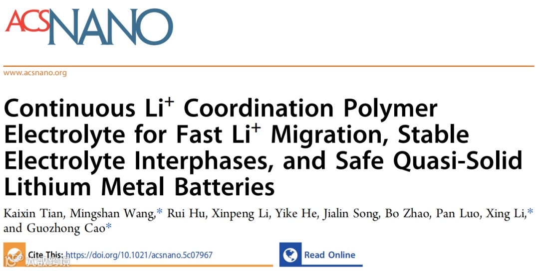 基于连续Li+配位聚合物电解质实现快速Li+迁移、稳定正负极界面和安全使用的准固态锂金属电池