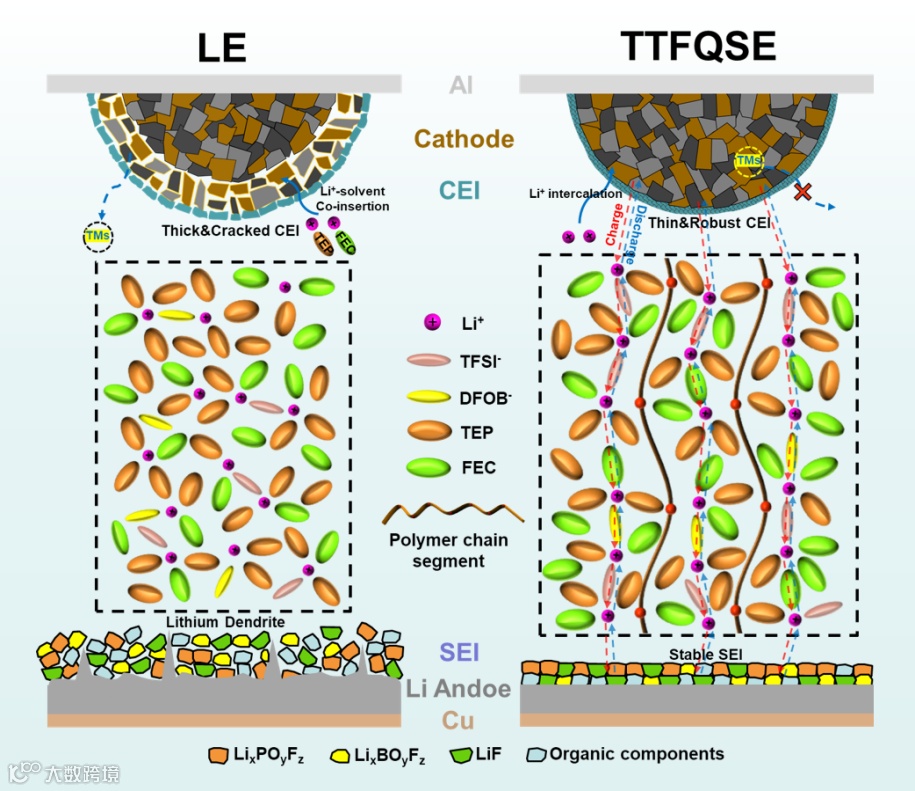 图2. TTFQSE的Li+传输性能与溶剂化结构优化