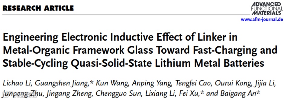 Engineering Electronic Inductive Effect ofLinker in Metal-Organic Framework Glass Toward Fast-Charging and Stable-Cycling Quasi-Solid-State Lithium Metal Batteries
