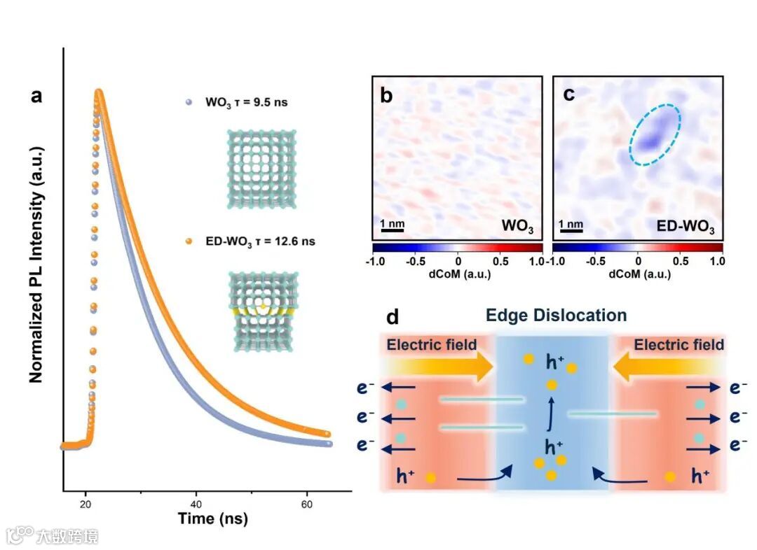 图3. 刃位错促进的WO3光阴极中载流子分离